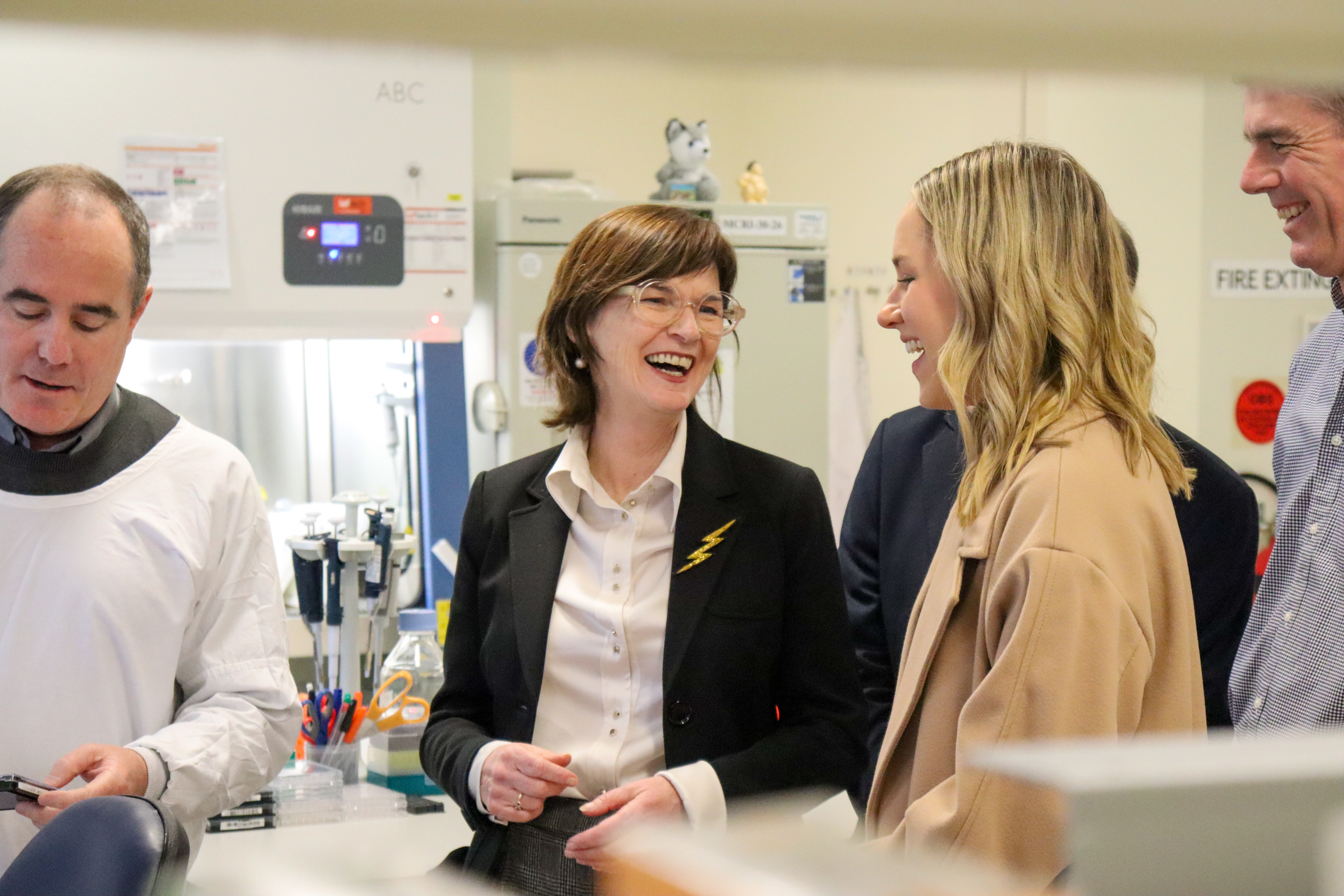Pictured: Olivia Phelan with Victorian Minister for Health, Mary-Anne Thomas on a tour of the VCGS labs.